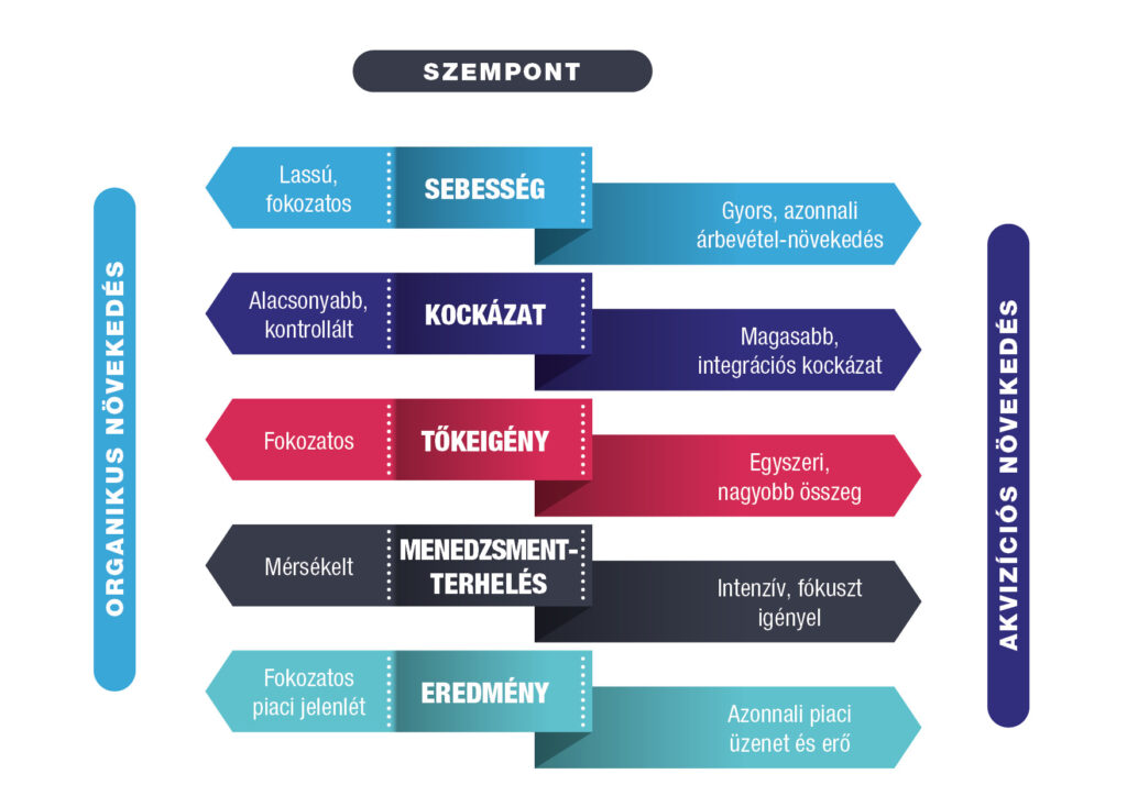 A valódi kérdés nem az, hogy lehet-e akvizícióval gyorsabban nőni, hanem az, hogy a cég működése elbírja-e ezt a terhelést. A két növekedési út között alapvető különbség van a sebesség, a kockázat és a szükséges menedzsment-kapacitás tekintetében.