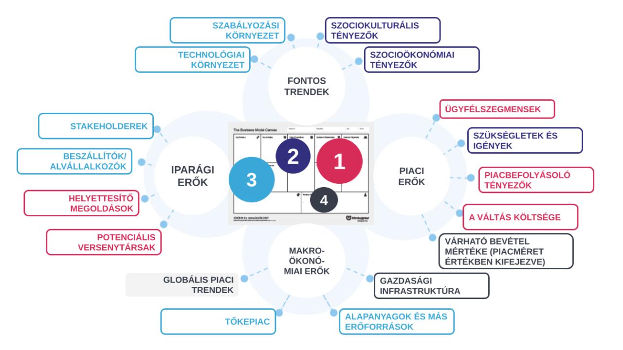 Ha pedig mindezt megfejeljük azzal, hogy mindez nem a légüres térben, hanem egy létező piaci környezetben jön létre (tehát mondjuk melléteszünk egy PESTEL-elemzést vagy a porteri öt erő vizsgálatát), akkor elérkezünk ehhez: